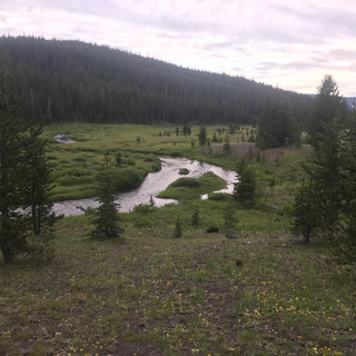 Old Faithful to Campsite 8M2 Miles: 16 Steps: 37,216 Vertical Gain: check Strava Liquid consumed: 120 oz Wildlife: thousands of mosquitoes, various birds, hopping frog Well, I'm standing at Old Faithful! Just had a huge buffet lunch, and honestly, I'm exhausted. I got about 4 hours of sleep last night. I have 13 miles to hike today too, and it's 12:25pm right now as I await the geyser to blow! There are a ton of people here. Kind of crazy even, compared to what my future holds. Thousands of people waiting for Old Faithful to blow. Not really a wilderness experience, but one of the best things about Yellowstone in my opinion is the accessibility. You can drive your car directly to a bunch of cool geo-thermal features and there are great flat easy hikes, many have boardwalks the entire way. We left Chris' house just after 7am and drove to Old Faithful. We checked out a couple of places along the way which was nice too so I could see what groceries were offered etc. and one place to see if a trail existed that wasn't in the map (it does!). At the park entrance we stopped at the Ranger Station. The ranger knew who I was and was already following me on Instagram! Crazy! She and her fellow ranger were helpful and very friendly. We took a picture together too st the end which was nice of them! You have to watch quite a long movie about safety too. Permit in hand, we were off to Old Faithful. We had an incredible all you can eat lunch at the Old Faithful Lodge with trout, chili, sausage, mac n cheese, and a bunch of other things. Maybe I should change the name of the trip to Eat the Parks! I left lunch early to not miss the geyser eruption. I was feeling super exhausted and kind of strung out this morning. Even at the geyser I just wanted it to go off so I could run inside and use the restroom! I told Chris this wasn't how I pictured my first day: exhausted, strung out, and hurried. Oh well, it kind of set the tone for the day! After the eruption we went back to the car and I grabbed my pack, said Thank you and goodbye to Chris and was on my way. Which way is that, you ask? I didn't know either. I remembered reading something just the other day about this part of the trail being confusing, but I had no idea what that was. I asked for directions, took them, and there was even a sign that seemed to point directly to the trail I took. Sadly, 2 miles later and I was a mile from where I needed to be. Haha, lost for the first 3 mikes of the trip! I said before I felt a bit hurried but now I felt I was rushing. Not ideal, but at least the terrain ended up being pretty easy all day. Mostly flat with some fairly minor ups and downs. But don't just think it was easy. Mosquitoes were just insane for parts of the day. At one point I took a video because the buzzing was so loud! I don't think you can hear it in the video, but it was comical. I put on my headnet and continued on. Next up? Pouring rain! It rained pretty hard for several hours straight. I was soaking wet. The trail also was very wet in spots, sloshing through swamps with the skeeters buzzing. I even stepped in some quicksand/mud that was pretty deep! It sucked my left leg and trekking pole down pretty deep! Really cool to pass through some geyser basins in the backcountry. Never hiked through steaming trails before. Pretty cool. The last few miles I got a second wind which was really nice. I felt good, on a day when I wasn't my normal self, mostly due to lack of sleep. I finally made it to the campsite and set up my tent. A CDT hiker from the Netherlands also camped here unexpectedly . He was nice to talk to for a bit but I was pretty excited to lay down in my tent. It feels great to relax and hopefully Ill get some nice sound sleep tonight. Nice picturesque campsite today with some rain sprinkles coming down as I write this at 8:30pm. So many mosquitoes still swarming outside of the tent! Overall, a good day! I was exhausted and felt rushed, and it poured and the mosquitoes, but it was good. The nice thing about backpacking is it's rewarding, and rather quickly. You may have a goal to complete a 5k or marathon and it feels so good when you reach your goal. Out here, it can kind of suck when you're getting poured on and there are 30 mosquitoes on your left hand. But, it's also quite rewarding when you overcome this. I don't know how to explain it well, I'm sure I'll come back to this topic in future entries though!